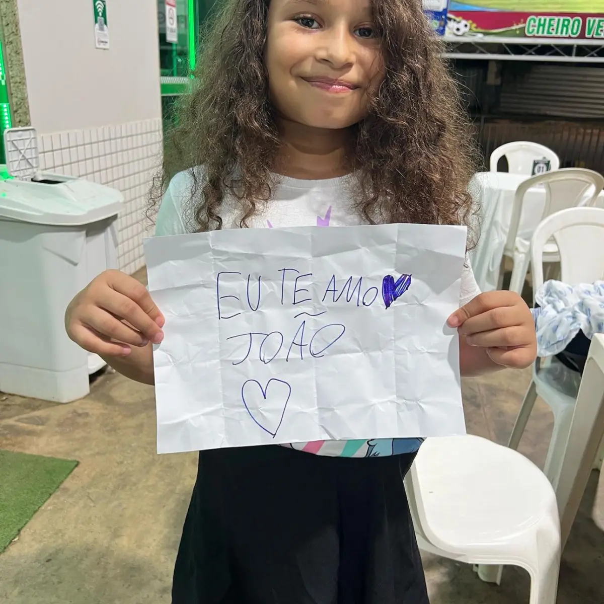 A irmã Maria Gabriela aproveitou a oportunidade para fazer uma declaração para o irmão caçula. Em uma folha de papel, Gabriela escreveu: “Eu te amo João.”