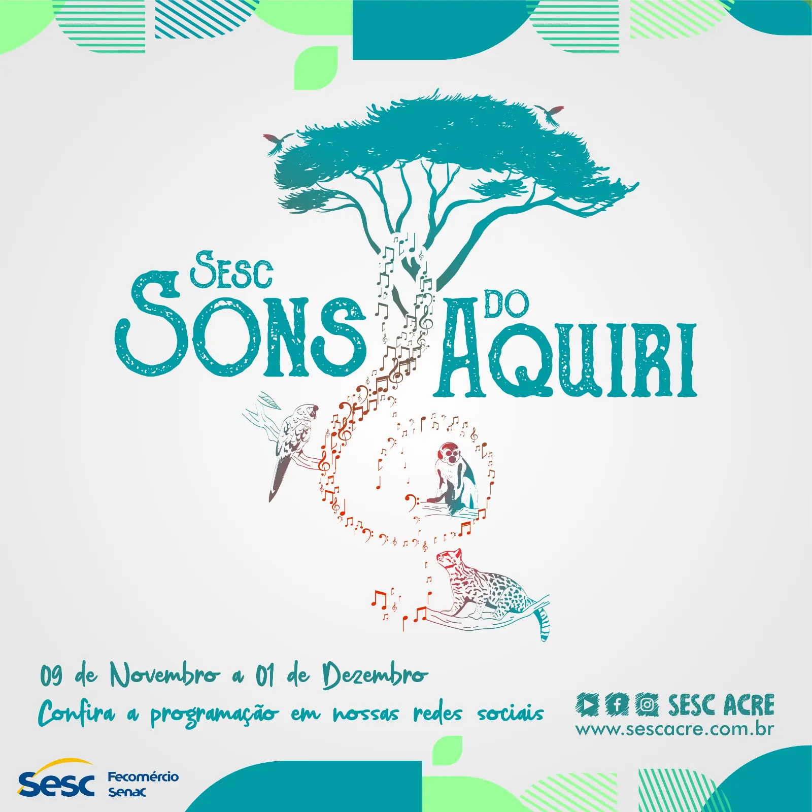 O projeto musical “Sesc Sons do Aquiri”, do Serviço Social do Comércio – Sesc no Acre, apresenta artistas locais em museus, escolas e teatros de Rio Branco entre os dias 9 de novembro a 1 de dezembro. A entrada é gratuita e o objetivo é democratizar a cultura e ampliar a visibilidade do trabalho dos artistas acreanos.