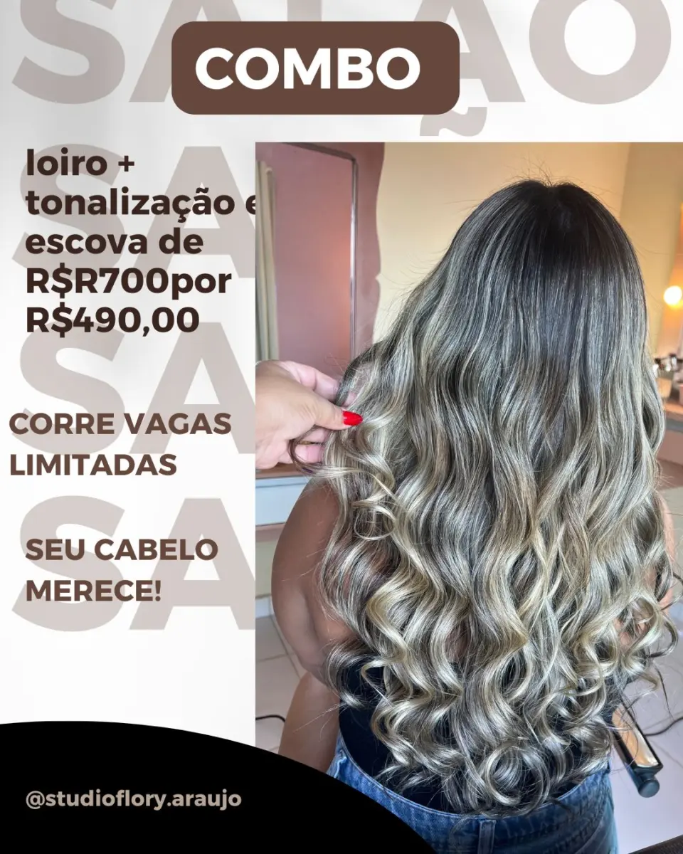 Quer arrasar com um lindo loiro, um lindo morena iluminado e um cabelo hidratado e com um preço que cabe em seu bolso? Anota a dica, Studio Flory Araujo, corre para agendar para as festas de final do ano.