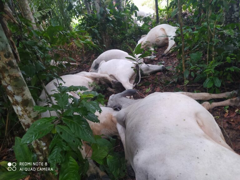 Dezesseis animais morreram após um raio atingir uma fazenda nesta quarta-feira (15) na zona rural do município de Sena Madureira, no interior do Acre. Segundo consta, um raio caiu em uma propriedade na região do ramal dos terçados e matou 16 animais que estavam no campo.