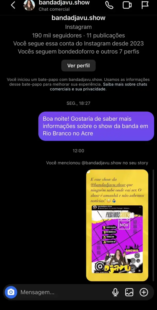 a Banda Djavú também não noticiou nada sobre a sua apresentação amanhã no Acre, além da data