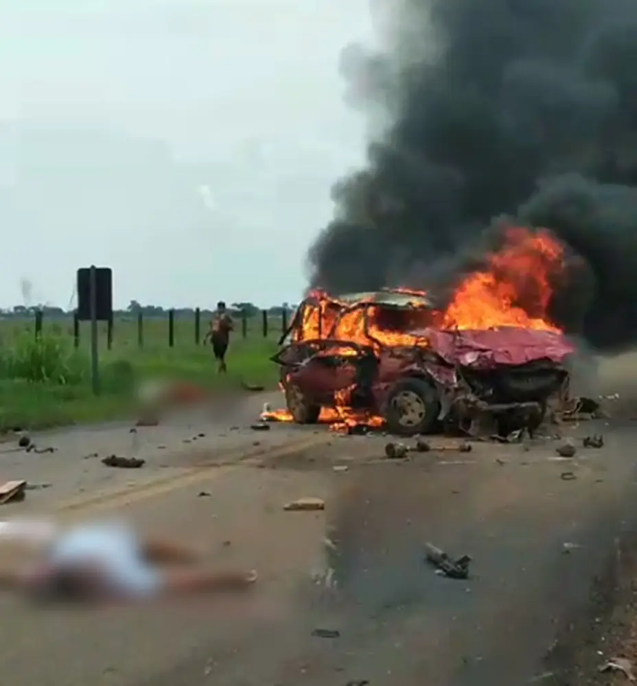 O impacto da batida foi tão forte que o casal (Cirilo e Maria) que seguia em um veículo tipo Fiat Uno foi arremessado pra fora do carro, sem vida.
