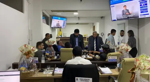 A sessão teve início por volta das 9h da manhã. O prefeito Tião Bocalom esteve presencialmente na Câmara para apresentar aos vereadores os programas habitacionais da capital acreana, que preveem a construção de quase duas mil unidades habitacionais.