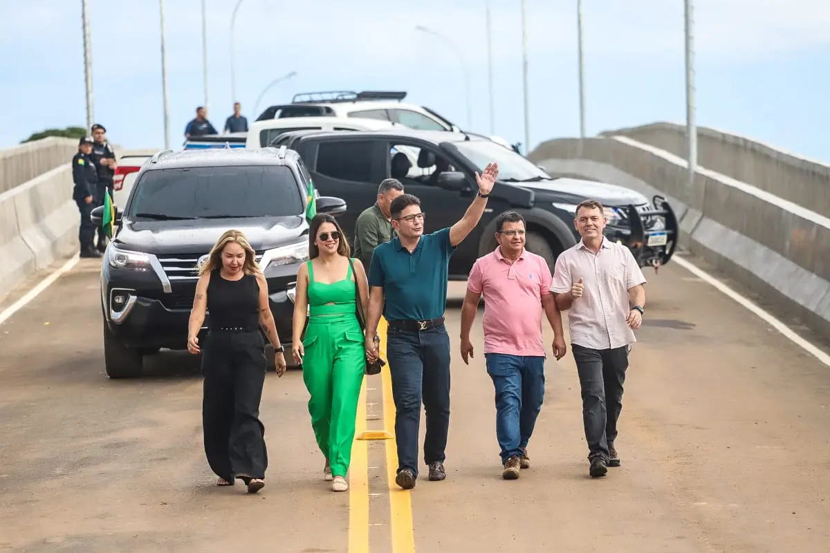 O governador Gladson Cameli (Progressistas) chegou a Sena Madureira, nesta terça-feira (19), para inaugurar a ponte do 2º Distrito do município, acompanhado da namorada Hanna Salim, do prefeito Mazinho Serafim e do presidente da Aleac, Luiz Gonzaga.
