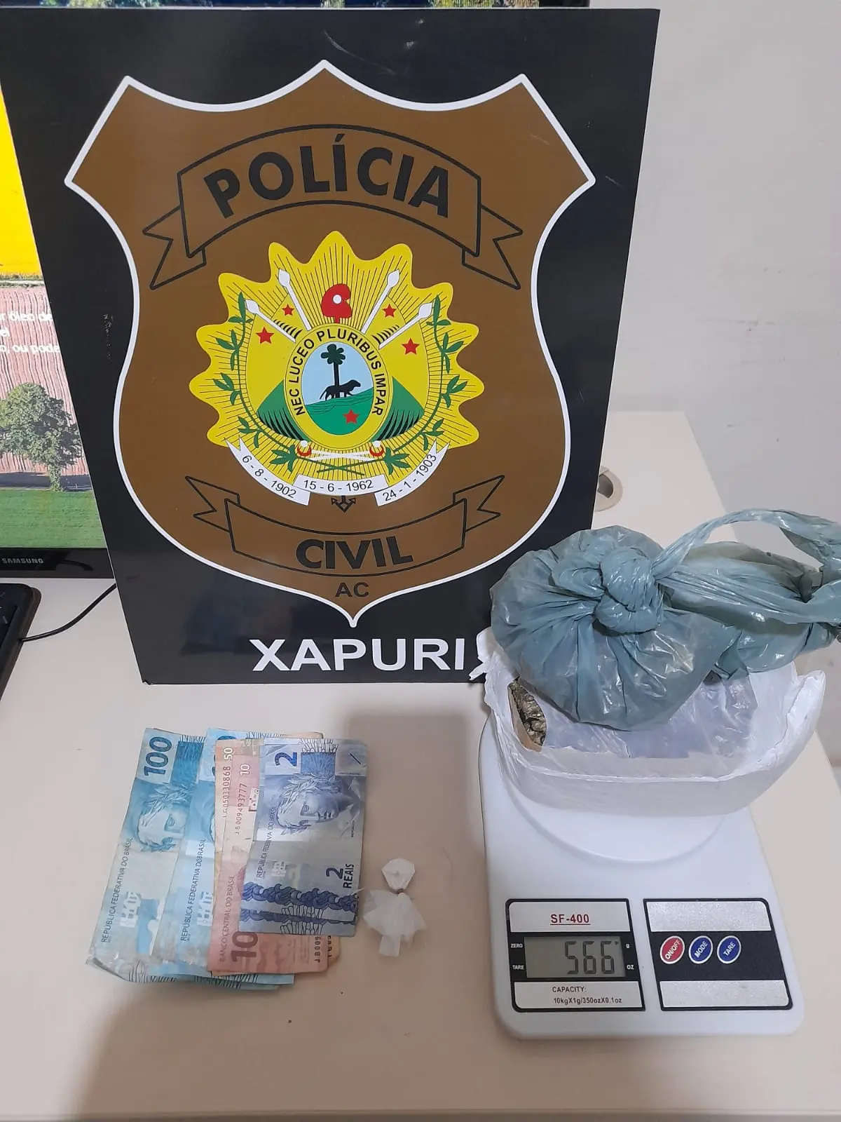 Na manhã de ontem, 15, a Polícia Civil de Xapuri, por meio da equipe de policiais civis, prendeu em flagrante o nacional V. N. L., por tráfico de drogas.