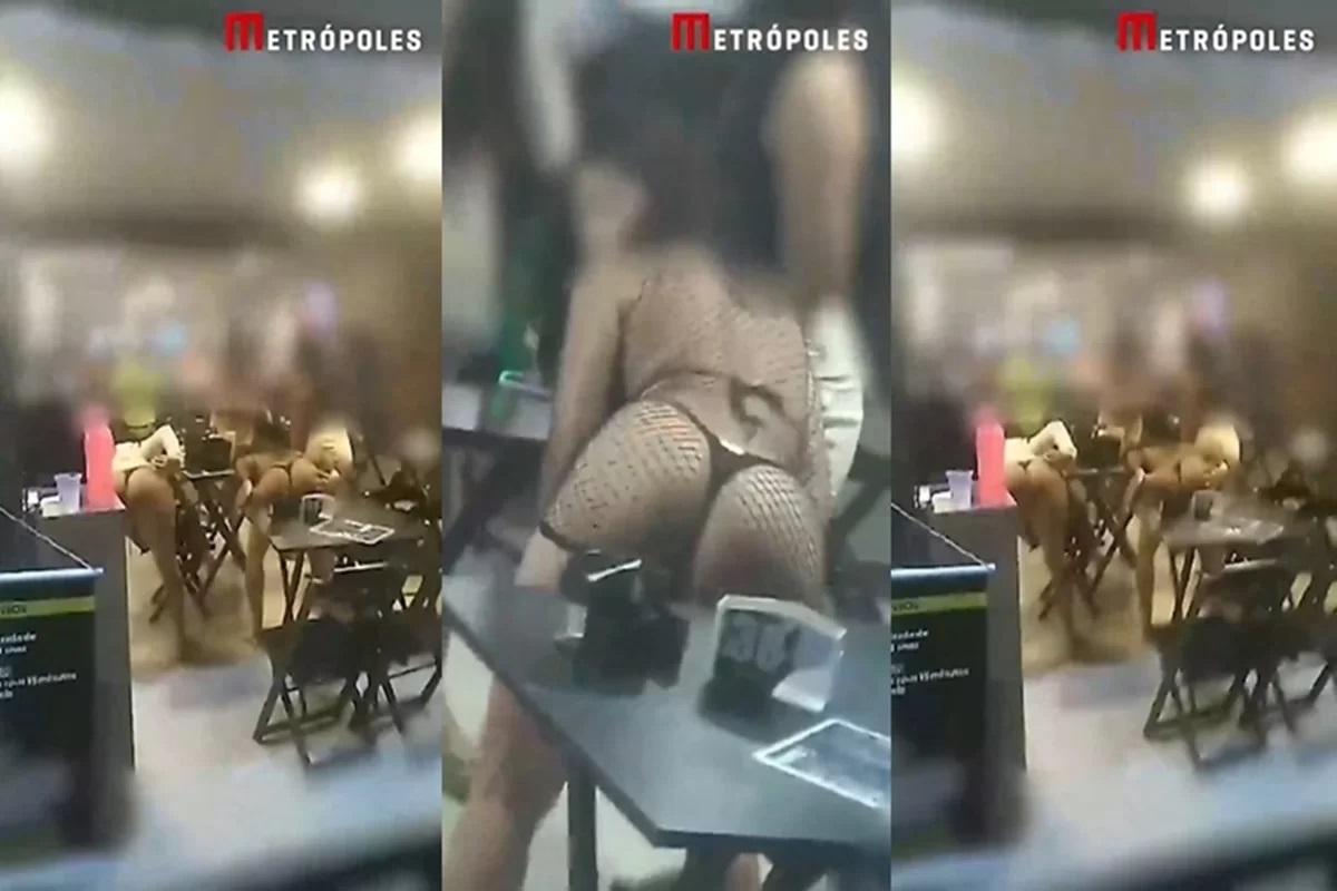Três fotos de mulheres de costas, dançando, de calcinha, em "bar da putaria" em Ceilândia