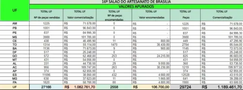 O 16º Salão de Artesanato de Brasília, realizado de 15 a 19 de novembro deste ano, busca reunir artesãos de todo o país, realizando uma exposição anual propícia ao público visitante conhecer um pouco dessa riqueza e valorizar o trabalho desenvolvido por artesãos do país. São produtos que trazem consigo um pouco da história, das matérias-primas e dos recursos naturais de cada município, cidade e estado participante.