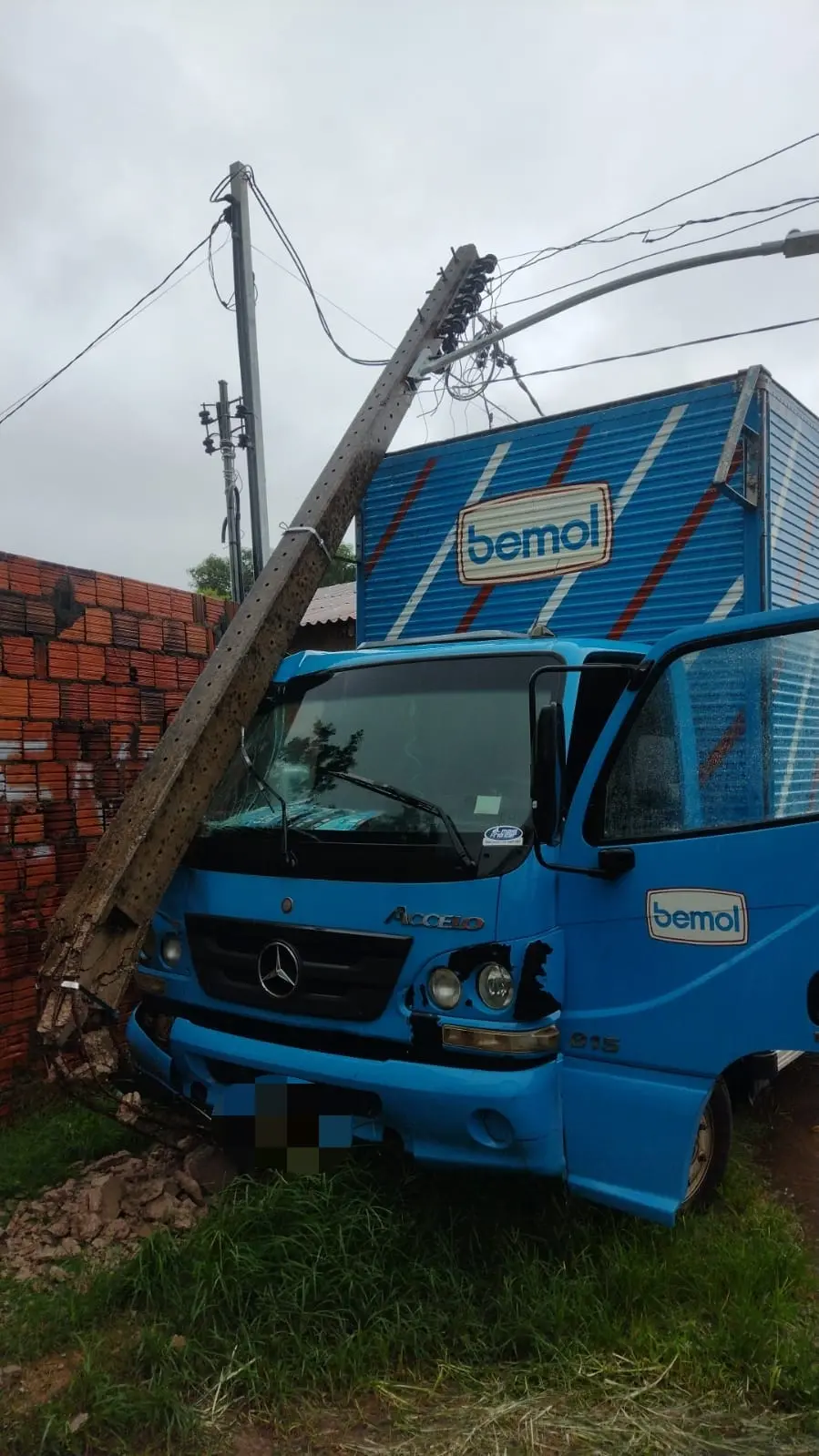 Assaltantes invadem loja, roubam caminhão e batem veículo em poste durante perseguição da PM