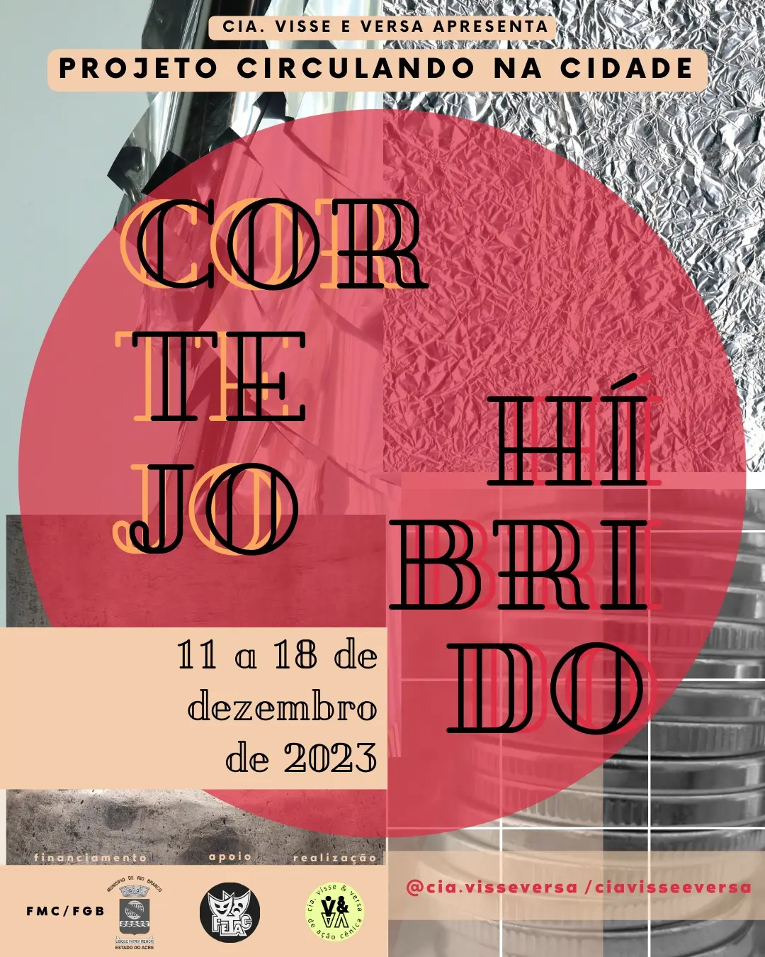 Cortejo Híbrido é um grande bloco carnavalesco, guiado e regido por textos autorais, poemas, cartas, recortes de jornal e histórias reais, com composição musical seguindo a mesma linha da dramaturgia. Conduzido por marchinhas de carnaval, o espetáculo propõe interação e traz o público para a cena, abordando temas relacionadas ao contexto social contemporâneo, estabelecendo um diálogo rico e reflexivo sobre as mazelas presentes na sociedade, colocando o público nessa grande roda da vida!