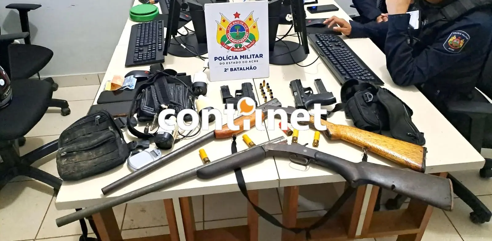Com os criminosos, os policiais também apreenderam duas espingardas, a pistola utilizada no assassinato, e conseguiram recuperar a arma leva do comerciante.