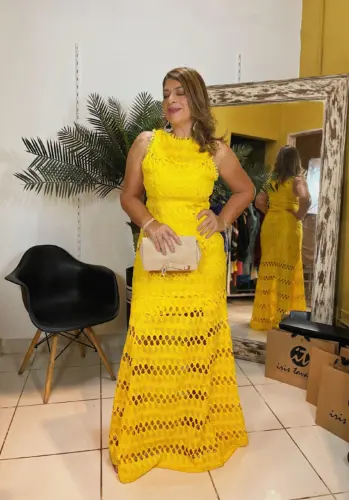 Quem vai investir no amarelo para a festa do réveillon? Por ser uma cor muito vibrante e forte, o amarelo costuma representar a alegria de viver, a inteligência e a possibilidade de aprender o tempo todo. Além disso, entre o significado das cores do Ano Novo, o amarelo é o que simboliza as amizades verdadeiras e também atrai prosperidade, ou seja, dinheiro. Essa proposta da Iris Tavares está incrível, né?!