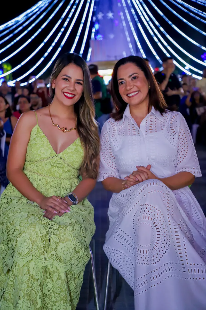 No final do evento, ela e a vice-governadora Mailza Assis entraram no clima natalino e colocaram gorros natalinos, bem no estilo Mamãe Noel.