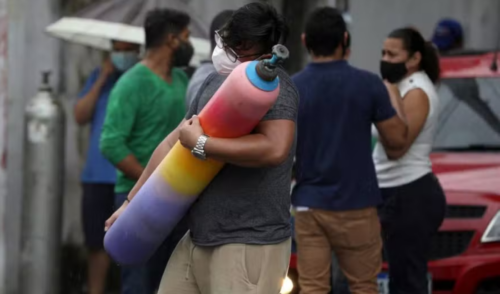 Parentes de pacientes precisaram adquirir oxigênio por conta própria em meio à crise em Manaus — Foto: Bruno Kelly/Reuters