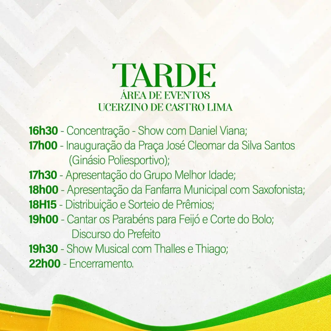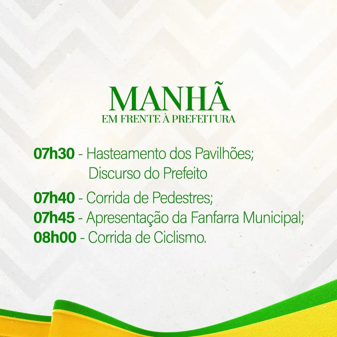 A programação dos festejos pelo aniversário da cidade é a seguinte: