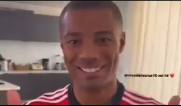 Com uma ação de marketing em conjunto com um dos patrocinadores do clube, Nico De La Cruz recebeu a camisa do Flamengo em casa dentro de uma caixa.