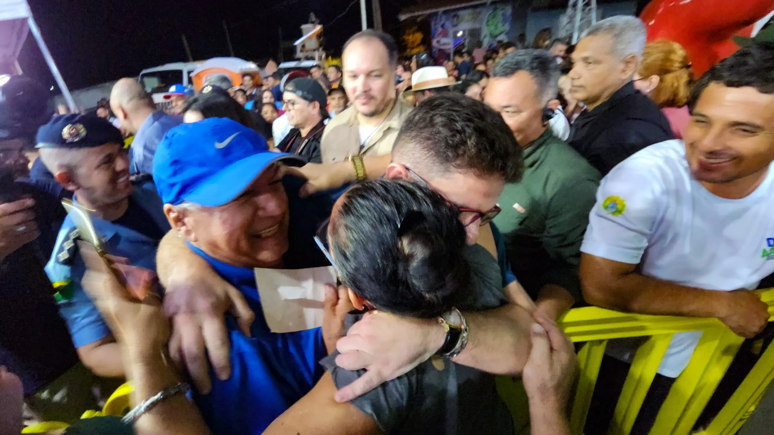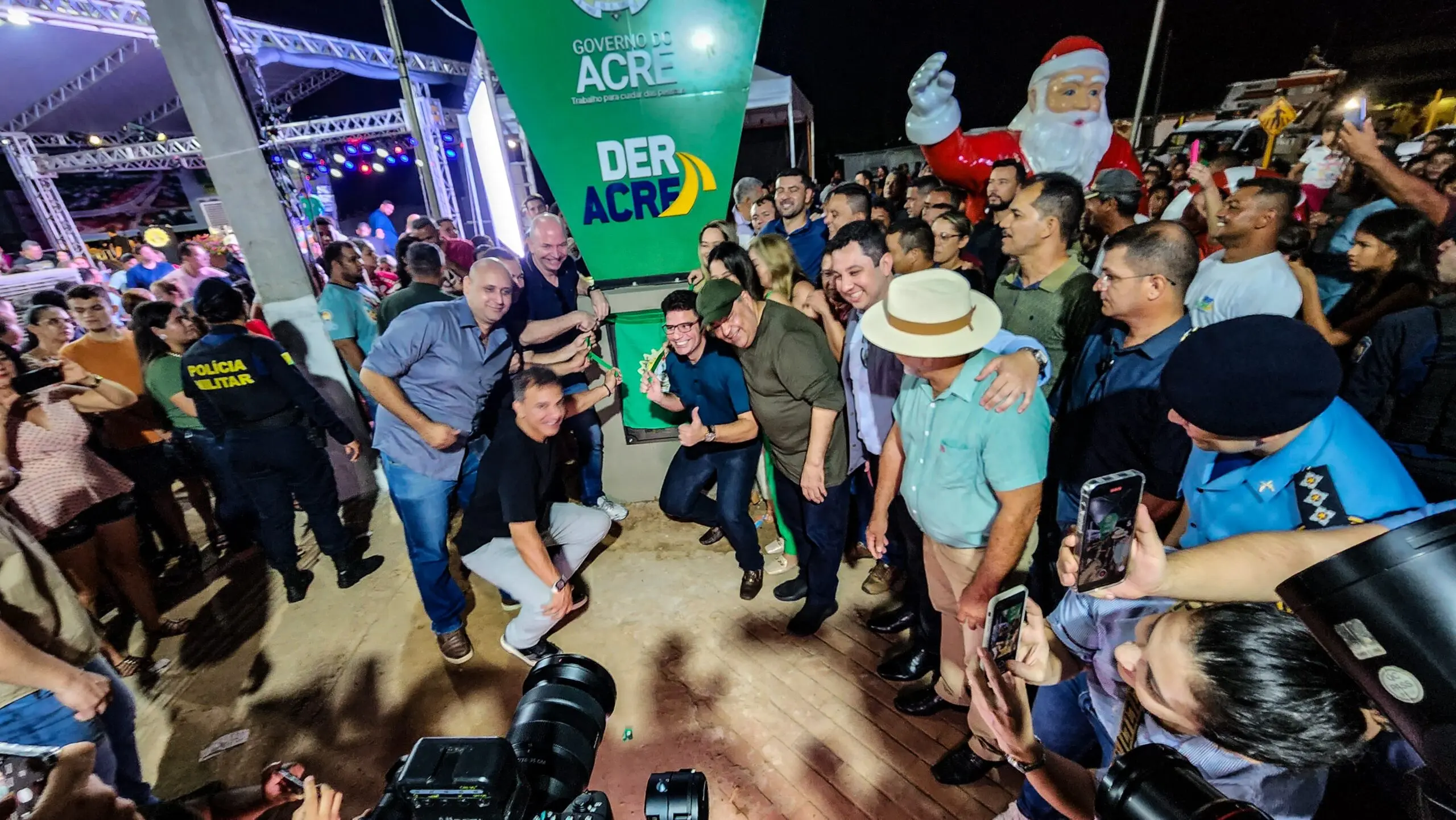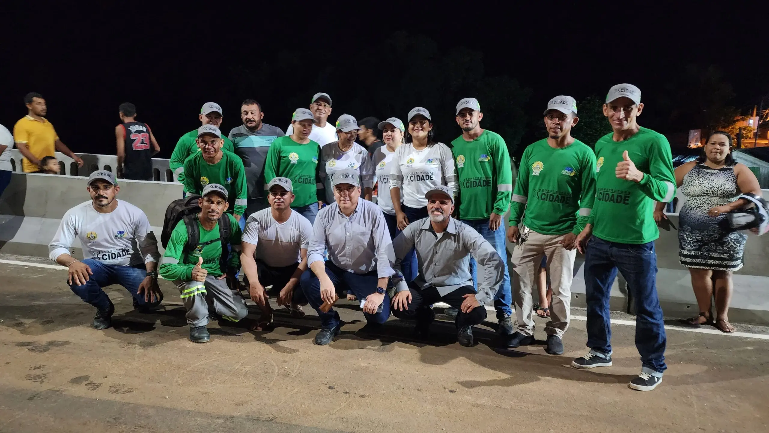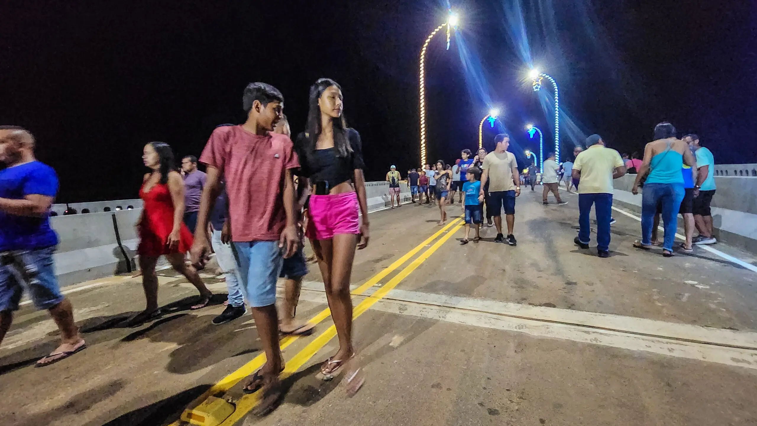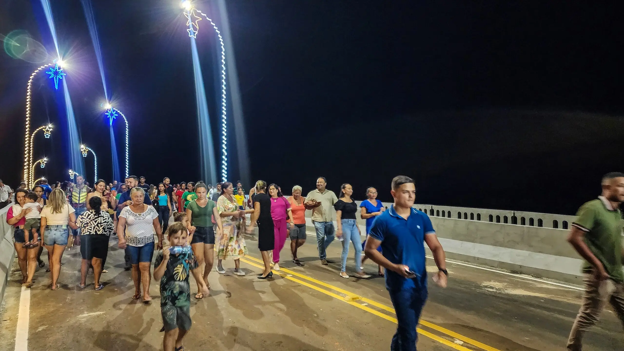 Ao lado da namorada Hanna Salim e de secretários, Cameli caminhou até a população, que o recebeu com abraços e palmas. Em um momento histórico, a população encheu a ponte Frei Paolino Baldassari vindo das duas direções.