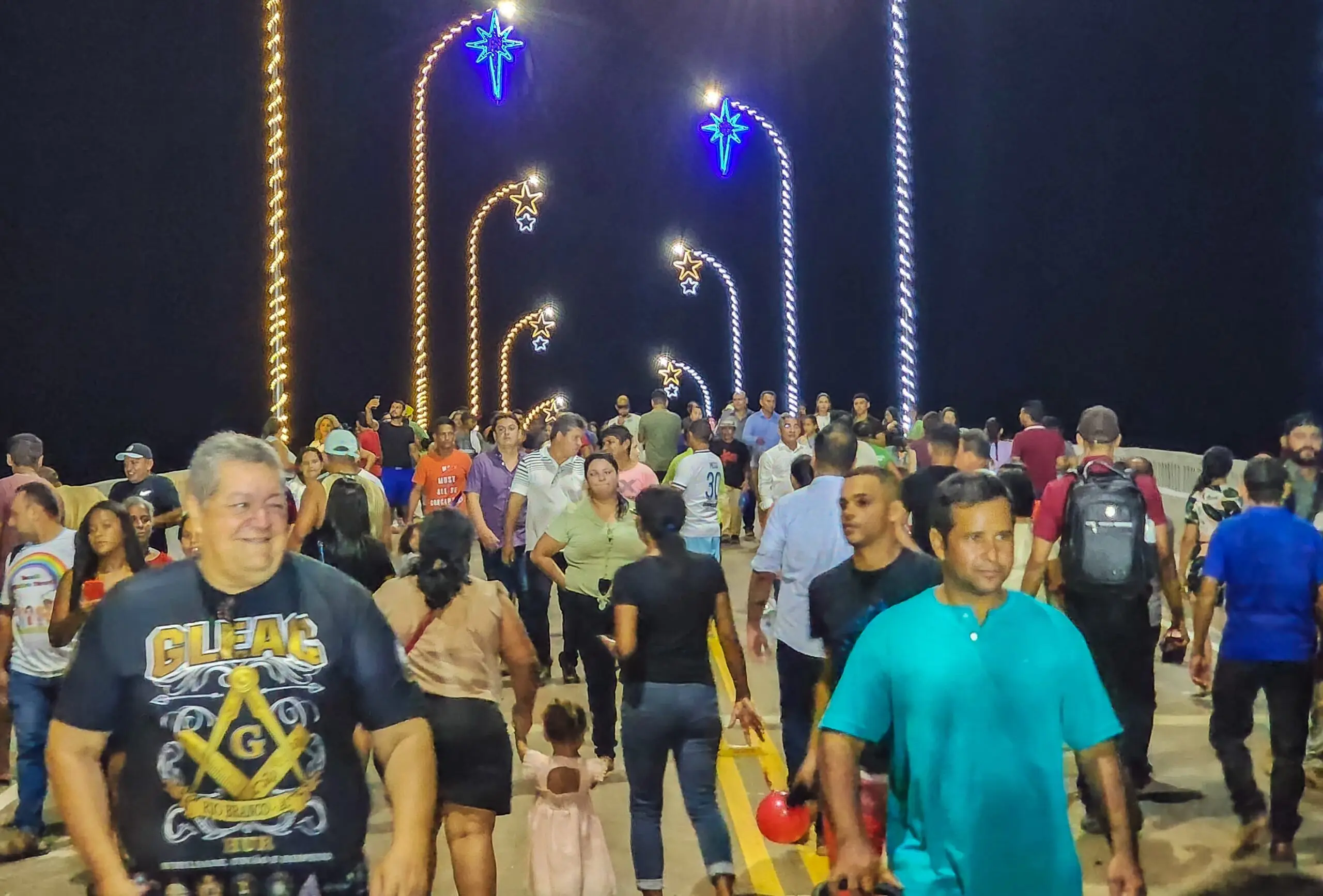 Após a solenidade de inauguração da Ponte Frei Paolino Baldassari, que liga o Primeiro ao Segundo Distrito de Sena Madureira, o governador Gladson Cameli fez o acendimento das luzes da ponte, em contagem regressiva com a população.