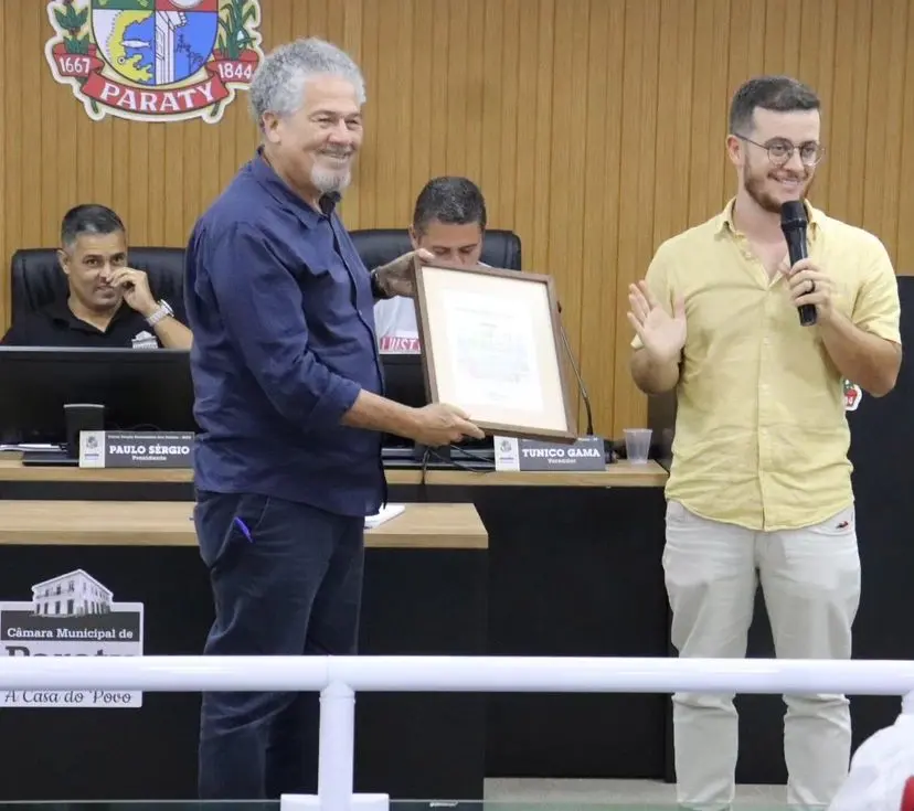 Nosso querido Carlos Bernardo, o Cacá, com uma Moção de Aplausos, concedida pela Câmara Municipal de Paraty. Por indicação do vereador Lucas (PSB), e aprovada por todos os vereadores daquela casa legislativa, a honraria dirigida a Cacá, foi um merecido reconhecimento ao trabalho que ele, como Técnico da Emater-Rio, tem desenvolvido com homens e mulheres da zona rural carioca, no implemento de atividades da agricultura familiar.