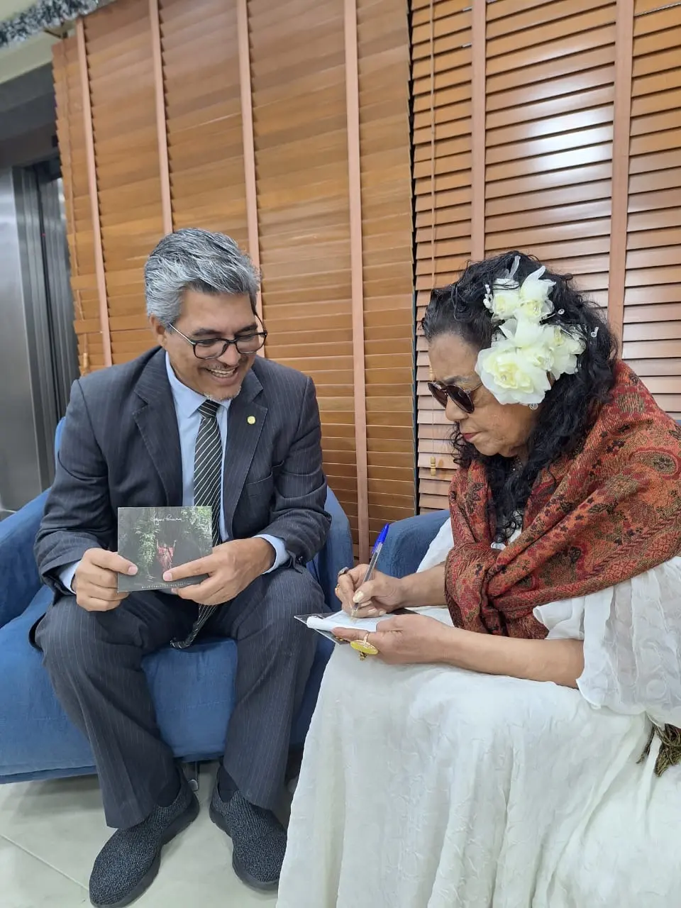 Quem esteve em terras acreanas para ser homenageada na sessão solene em alusão aos 86 anos da Academia Acreana de Letras, realizada pela Assembleia Legislativa do Acre (Aleac) no dia 23 de novembro, foi a cantora e compositora Nazaré Pereira. Nazaré recebeu a comenda José Potyguara, entregue pelo deputado Edvaldo Magalhães (PCdoB), em reconhecimento ao trabalho na difusão da cultura popular brasileira através da música e outras manifestações. Ela t foi a Xapuri, sua terra natal, onde foi recepcionada no Instituto de Ciência e Tecnologia do Acre (Ifac).