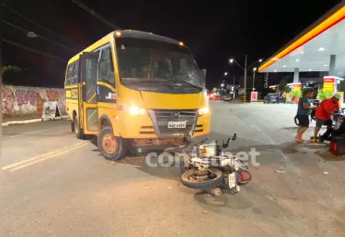 Na noite desta quarta-feira (13), por volta das 20:40, um grave acidente envolvendo um ônibus escolar e um motoboy foi registrado no bairro Vila Ivonete, em Rio Branco (AC). O motoboy, identificado como André dos Santos Bardales, de 38 anos, seguia sentido bairro-centro pela Avenida Getúlio Vargas quando a colisão ocorreu nas proximidades de um posto de gasolina.