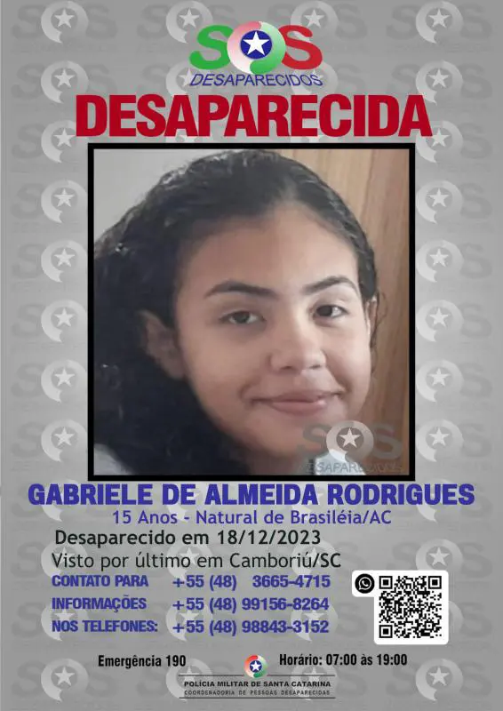 De acordo com a jornalista, ocaso já está sendo investigado pela polícia do Santa Catarina. Quem souber de notícias sobre a adolescente Gabriele de Almeida Rodrigues, entre em contato pelos números (68) 992462778 / (93) 991425161.