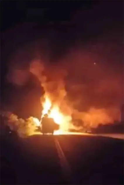 Ônibus pega fogo na BR-364/Foto: Reprodução