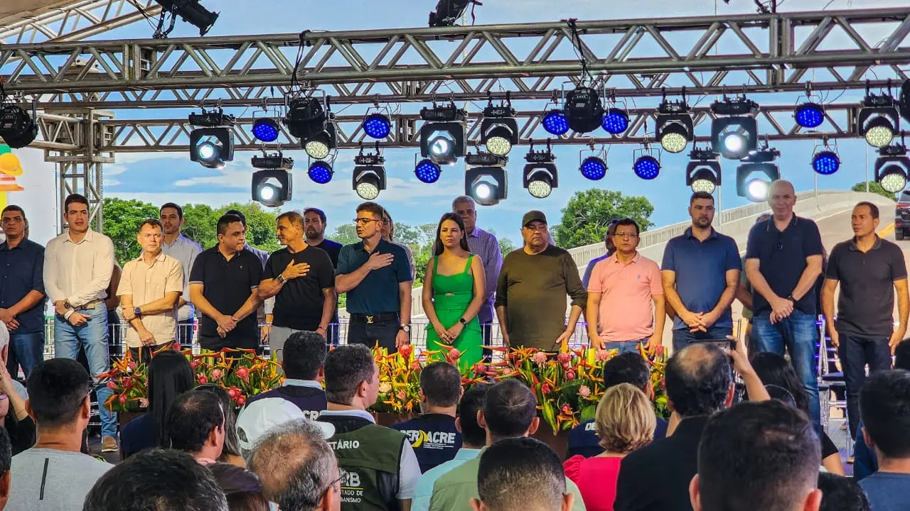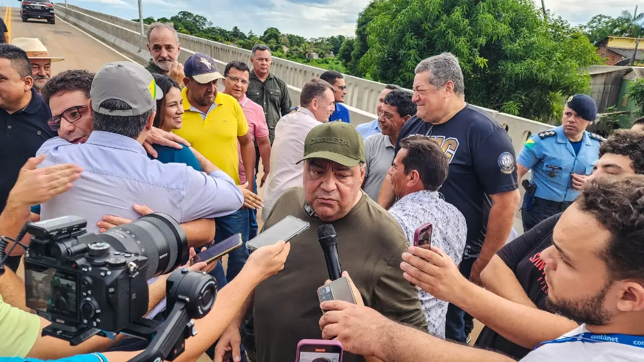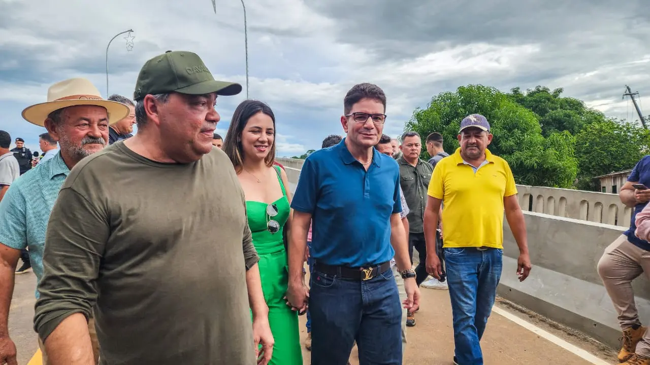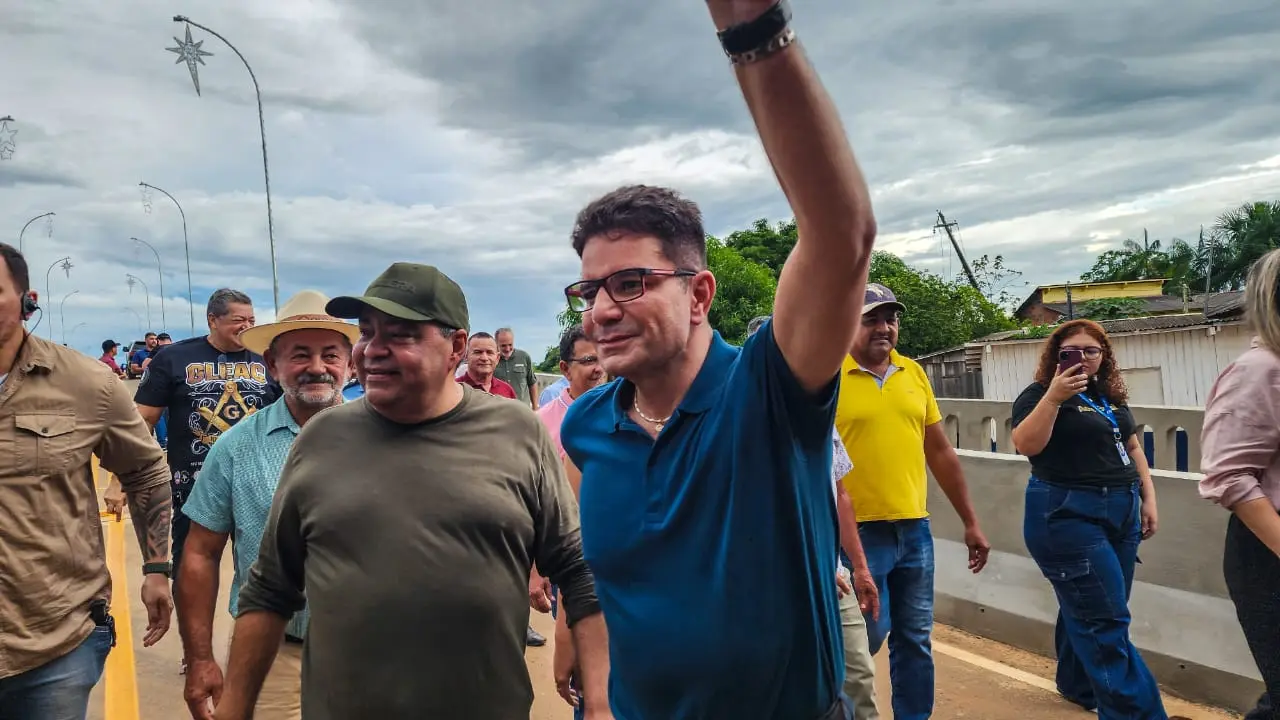 - Prefeito Mazinho Serafim e o governador Gladson Cameli durante a entrega da ponte/Foto Juan Diaz, ContilNet