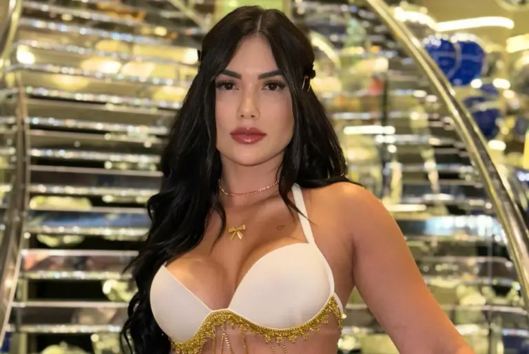 A influenciadora Rogeria Rocha, que está no badalado cruzeiro do jogador, elevou a temperatura de seu perfil no Instagram ao mostrar a sua fantasia para a última festa no navio. A musa apareceu sem calcinha com um top, usando um vestido com fenda lateral enorme, com correntes e detalhes dourados. O modelito branco deixou claro que a musa não estava usando roupa íntima devido ao recorte acentuado na lateral do corpo.
