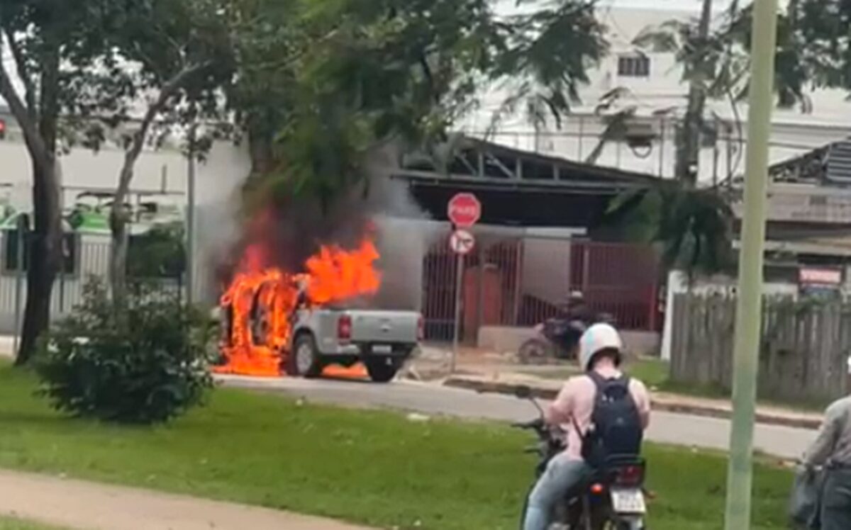 Um vídeo enviado à reportagem do ContilNet, na manhã desta terça-feira (26), mostra uma caminhonete modelo S10 pegando fogo no Canal da Maternidade.