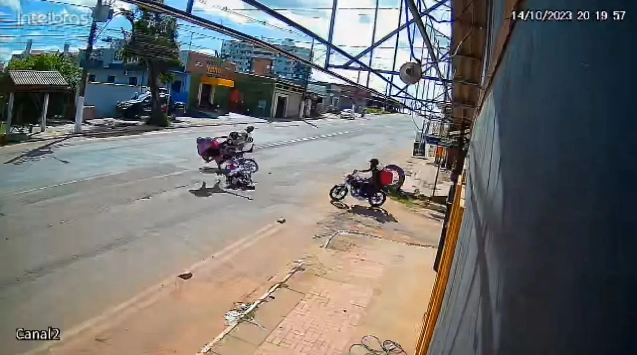 Um acidente entre duas motocicletas foi registrado neste sábado (2), na Estrada do Calafate, próximo à Fundação Bradesco, em Rio Branco, no Acre. O momento do choque foi gravado por um circuito de câmeras de uma loja, enviado ao ContilNet.