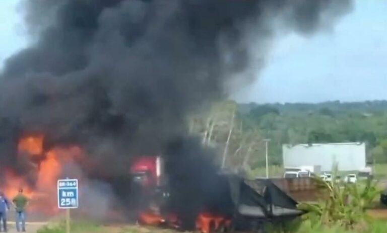 VÍDEO: três pessoas morrem em acidente e veículo pega fogo na BR-364