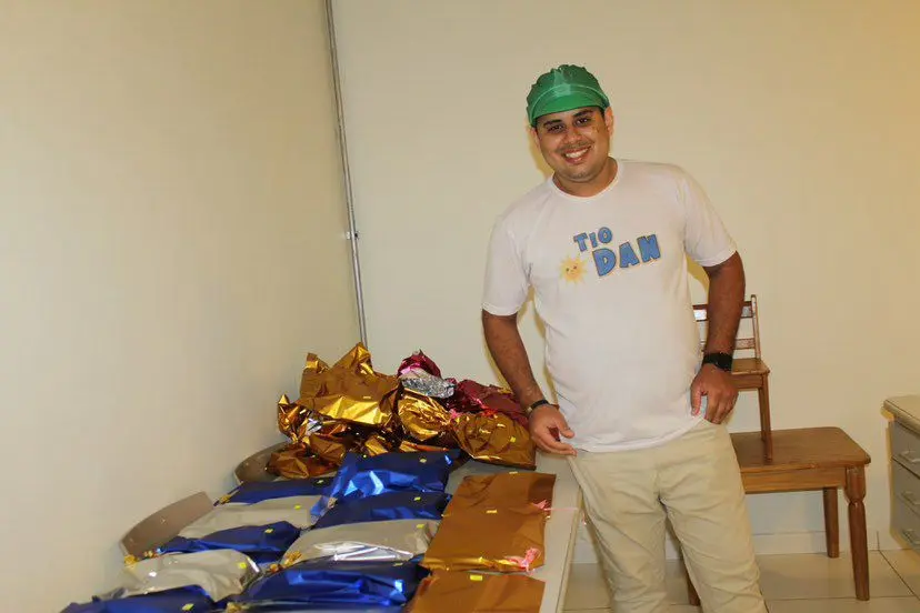 Foi justamente no Educandário que ele resolveu passar mais um aniversário, ao lado das crianças. Em uma ação social, o Tio Dan levou brincadeiras e ensinamentos do evangelho.