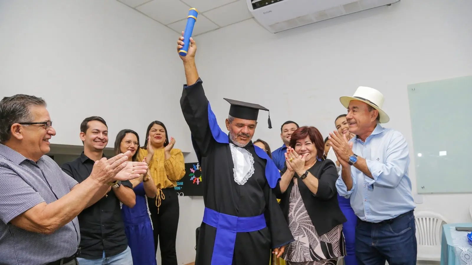 A beca, foi a melhor roupa que Gilson Kennedy Rosário Pereira vestiu em seus 56 anos de vida. Não porque lhe deixou elegante, mas com finesa. Para ele, a vestimenta representa mais que a beleza. É o símbolo da esperança e dignidade. O chinelo de dedo para o Gilson é a melhor combinação. Na manhã desta quinta-feira, o Gilson selou a superação de uma fase da vida com o diploma do ensino fundamental que foi entregue à ele em uma solenidade de formatura exclusiva, pelas mãos do próprio prefeito.