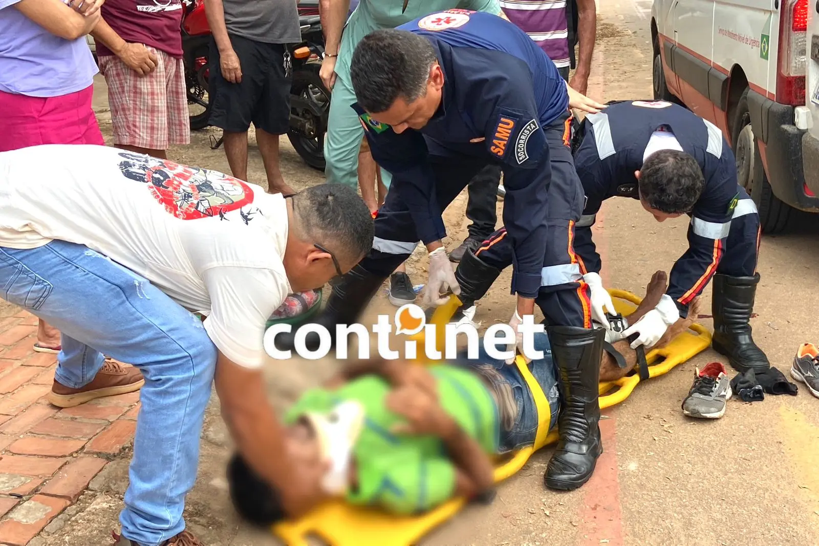 A motorista do veículo parou imediatamente e ligou para o Serviço de Atendimento Móvel de Urgência (Samu). A viatura de suporte básico 04 foi destacada para atender a ocorrência. Assim que os socorristas chegaram ao local, todos os procedimentos foram devidamente adotados. Geyson Oliveira, enfermeiro da equipe, informou que Helozangelo teve uma fratura exposta na perna esquerda e algumas escoriações pelo corpo, foi devidamente estabilizado e encaminhado para dentro da viatura. Nesse mesmo momento, o condutor socorrista do Samu, Willian Viana, prestava socorro à criança, que foi acolhida e encaminhada junto com seu pai para o Pronto-Socorro de Rio Branco, onde foram entregues com quadro de saúde estáveis, porém, deverão passar por novas avaliações pela equipe médica do trauma do PS.