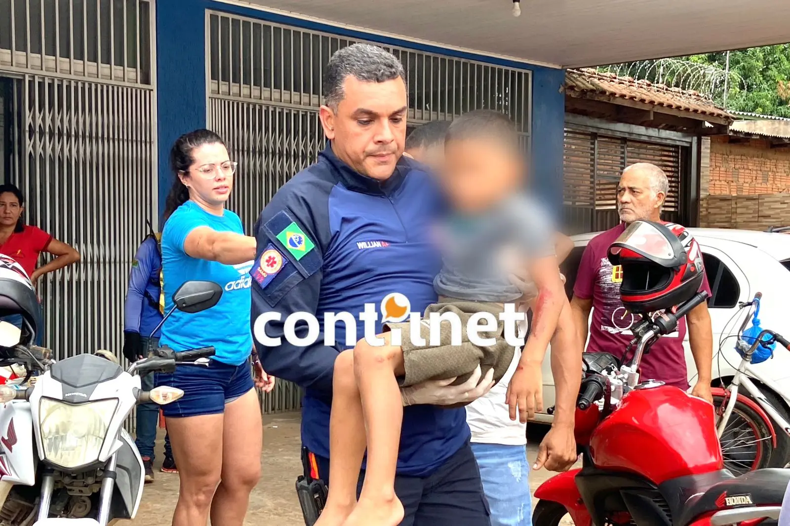 No momento da batida, o motociclista transportava seu filho, uma criança de 6 anos, e ambos caíram ao solo, porém, a criança teve apenas algumas escoriações.