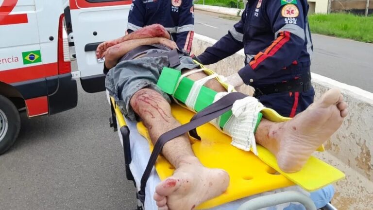 Com a força do impacto o homem foi arremessado e ficou caído no chão com ferimentos graves. O homem foi levado para o Hospital João Paulo II com lesões na cabeça, e fratura na perna esquerda.