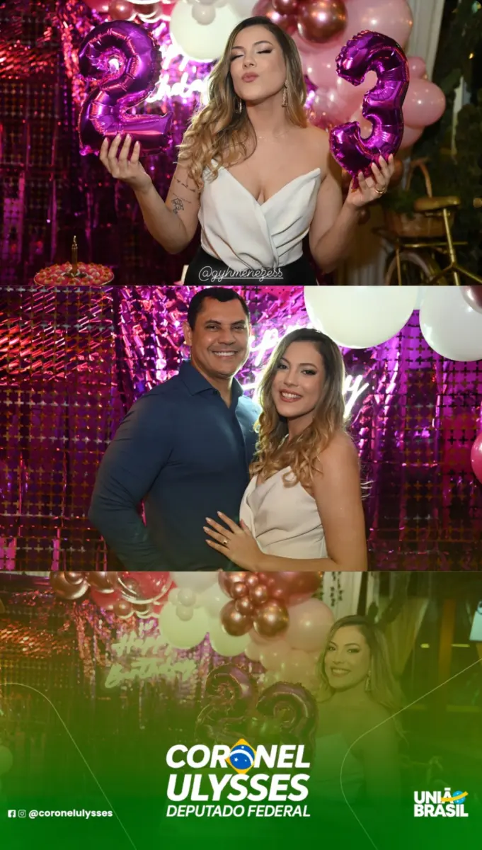 Giovanna Menezes, filha do casal Dayanna Menezes e Coronel Ulysses, comemorou seus 23 anos no domingo (28)/Foto: Reprodução