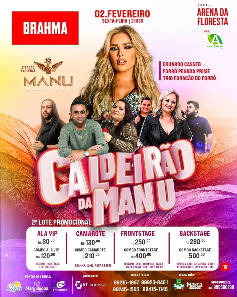 Faltando 8 dias para o show de Manu Bahtidão no Acre, a organização anuncia os últimos ingressos e a virada de lote. O show de Manu Bahtidão é um dos eventos mais aguardados no Acre.