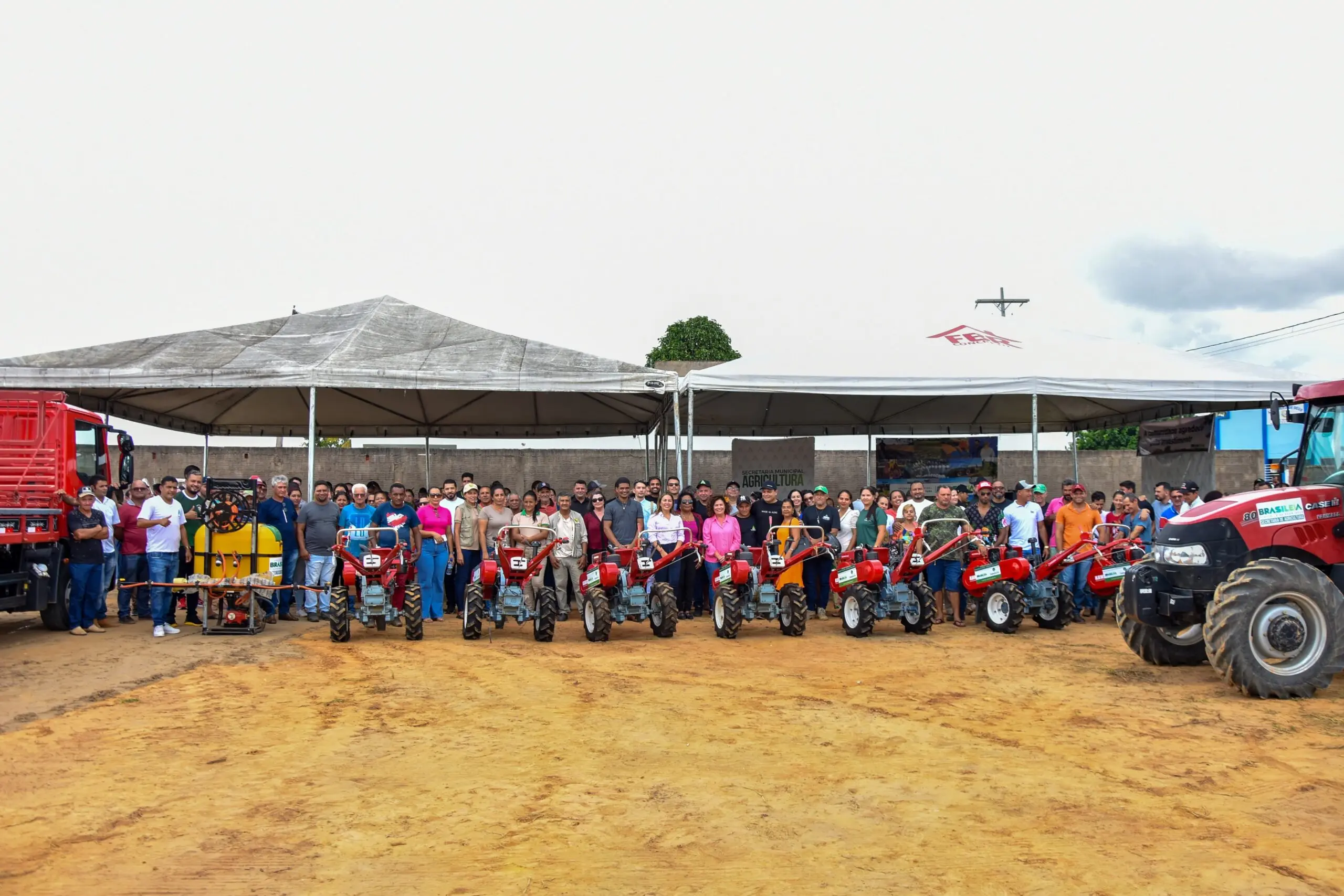 Na oportunidade, foram entregues aos produtores, 01 Caminhão, 10 microtratores, 01 pulverizador e uma 01 roçadeira hidráulica.