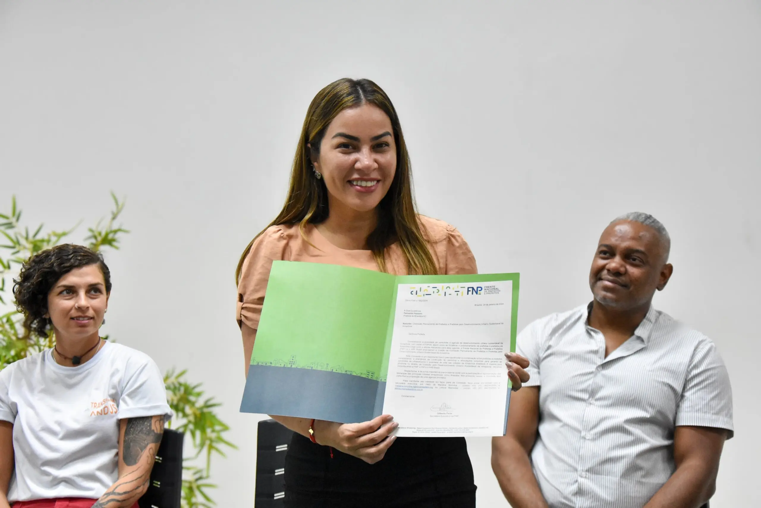 Durante o encontro, a prefeita Fernanda Hassem recebeu uma carta convite do secretário executivo da Frente Nacional de Prefeitos, convidando-a a fazer parte da Comissão Permanente de prefeito e prefeitas de desenvolvimento urbano sustentável da Amazônia.