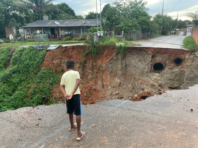 Erosão ocorrida na tarde desta quinta-feira em Rio Branco/ Foto: ContilNet