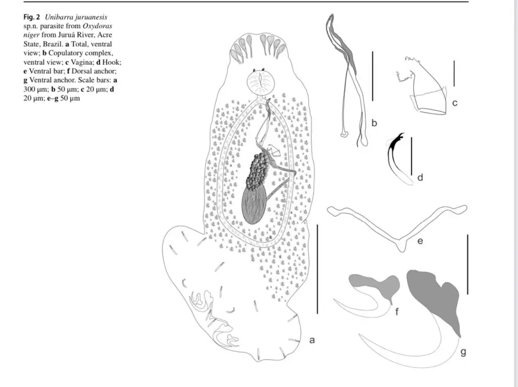 A pesquisadora lembra que os parasitos foram achados no peixe Oxydoras niger, conhecido como “ Cuiu cuiu” , muito apreciado na região do Juruá. Ainda em 2023, uma segunda nova espécie de parasito foi descoberta neste mesmo peixe , também no rio Juruá. “Os parasitos são coletados das brânquias dos peixes. A nova espécie se chama Unibarra juruansis, nome dado em homenagem ao rio Juruá em Cruzeiro do Sul”, disse Williane.