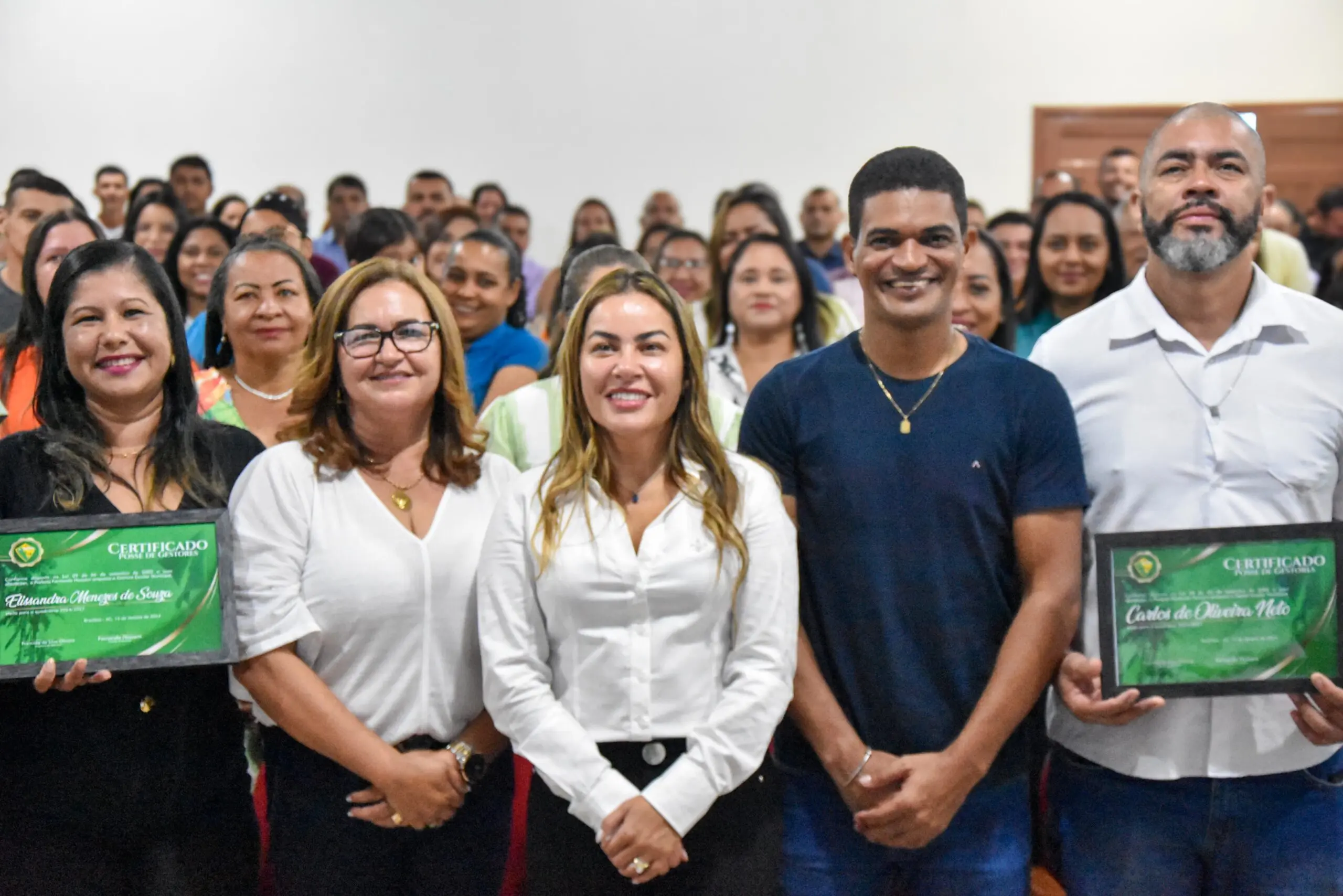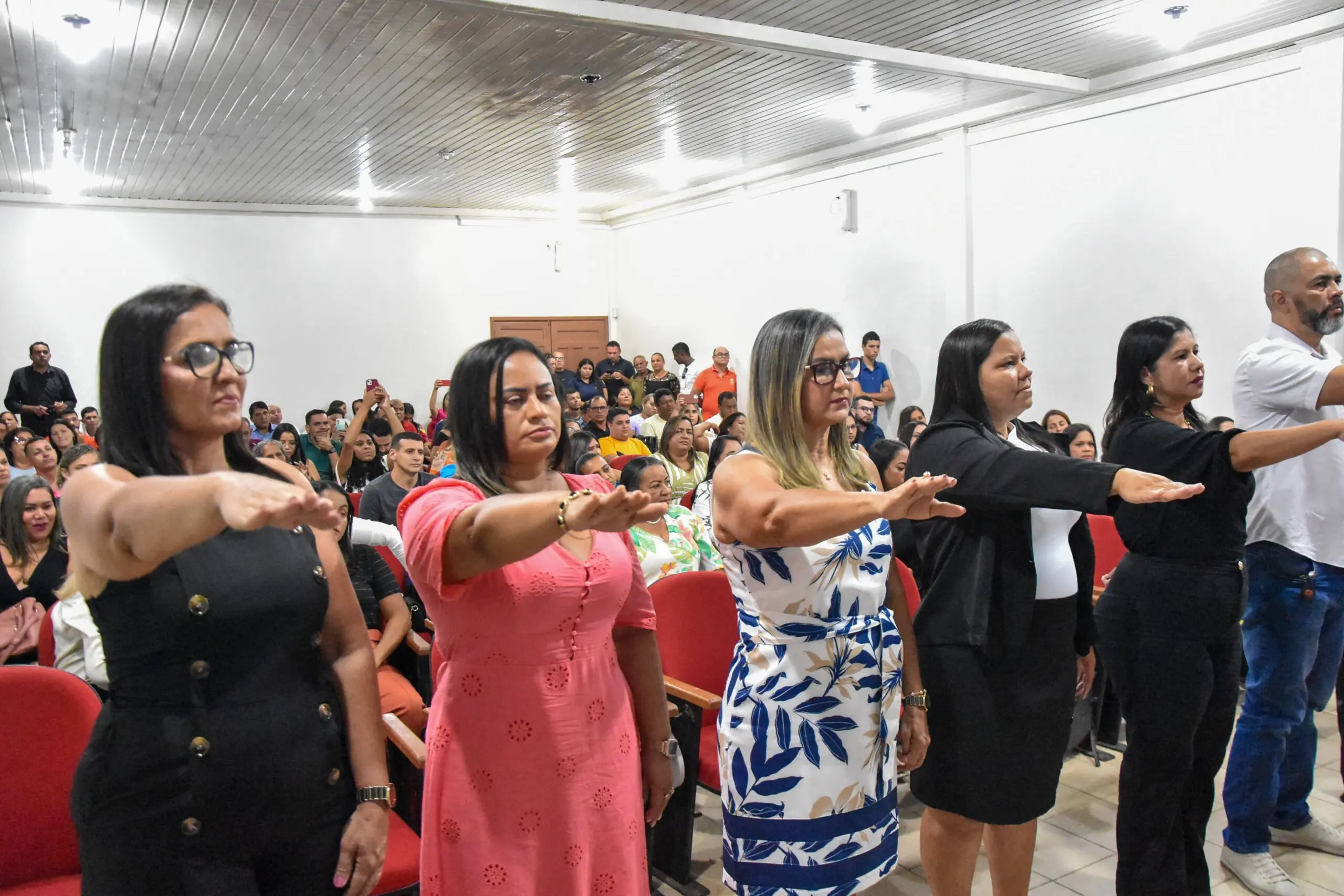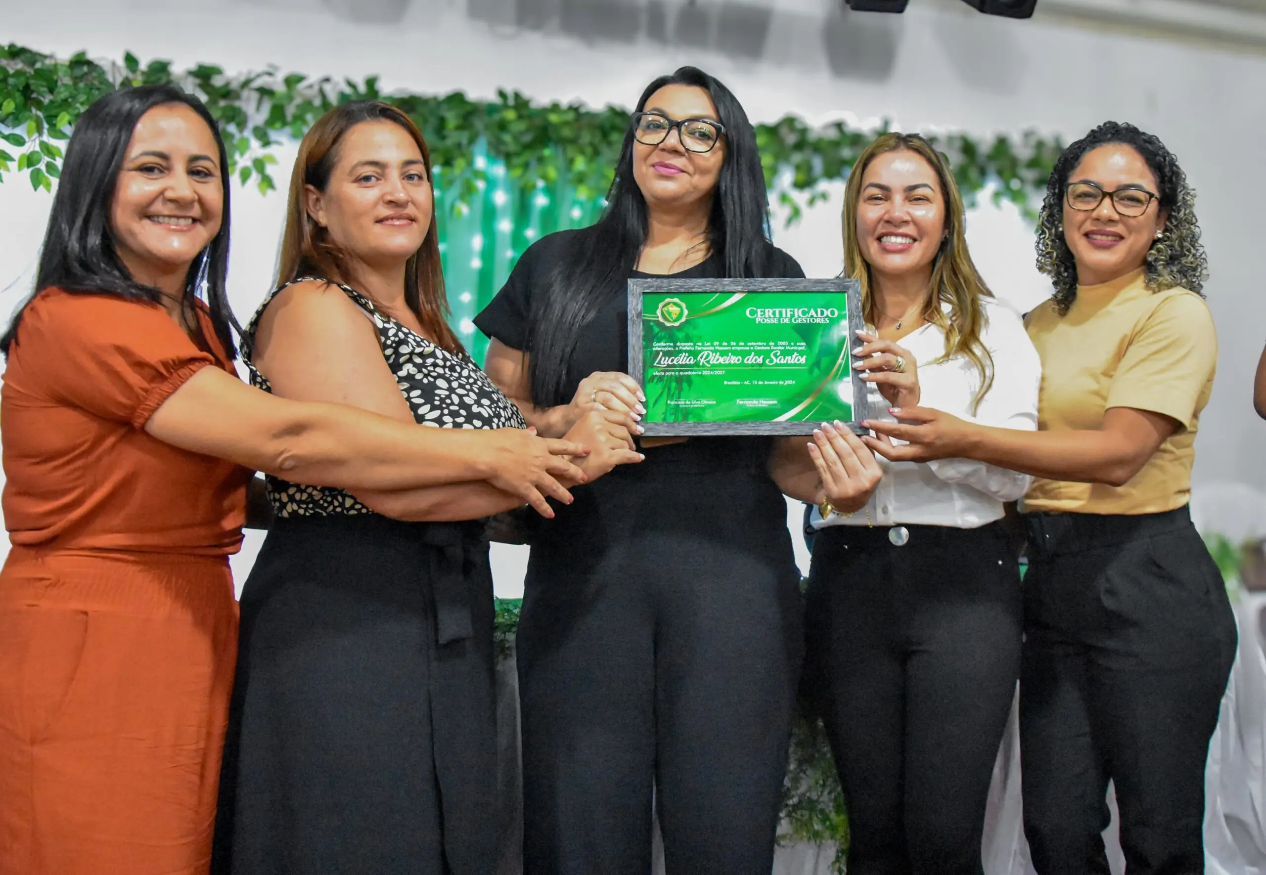 A cerimônia contou com a presença da prefeita Fernanda Hassem, da presidente do Conselho Municipal de Educação, Sônia Peterson, presidente da Câmara, Marquinhos Tibúrcio, secretária de Educação, Francisca Oliveira, presidente do Sinteac, José Almeida, autoridades municipais e dos membros da comunidade escolar.