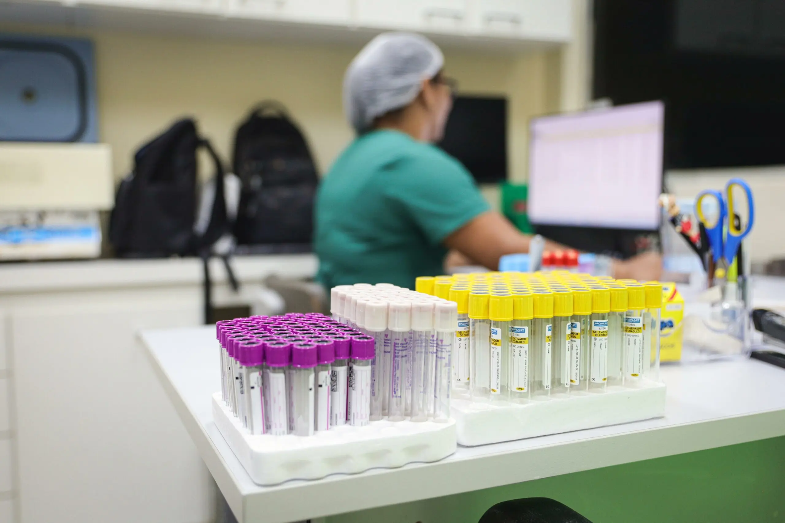 Profissionais coletam exames no SAE. Foto: José Caminha/Secom