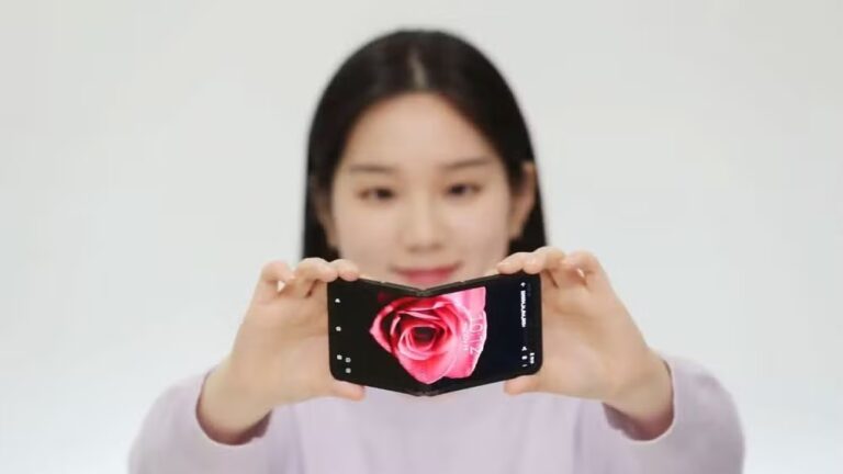 Uma tela que pode dobrar para trás foi apresentada pela Samsung nesta terça-feira (9), na CES 2024. Batizado de “Flex In & Out”, o protótipo parece uma versão do Galaxy Z Flip 5, mas com a diferença de poder ser dobrado em 360º, sem cobrir a câmera traseira. Para isso, a Samsung garantiu que trabalhou em uma nova evolução de sua tela dobrável, que continua funcional mesmo quando o display está disposto ao avesso. Quando totalmente aberto, porém, o painel tem 6,7 polegadas. Ainda não há informações sobre quando o produto chegará às lojas e o seu preço sugerido.