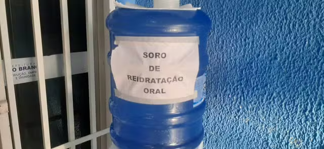 A Unidade de Referência em Atendimento Primário (Urap) Roney Meireles, localizada no bairro Alto Alegre, em Rio Branco, disponibilizou para os pacientes, soro caseiro em um bebedouro no corredor do local, visando auxiliar na hidratação de quem apresenta sintoma de dengue.
