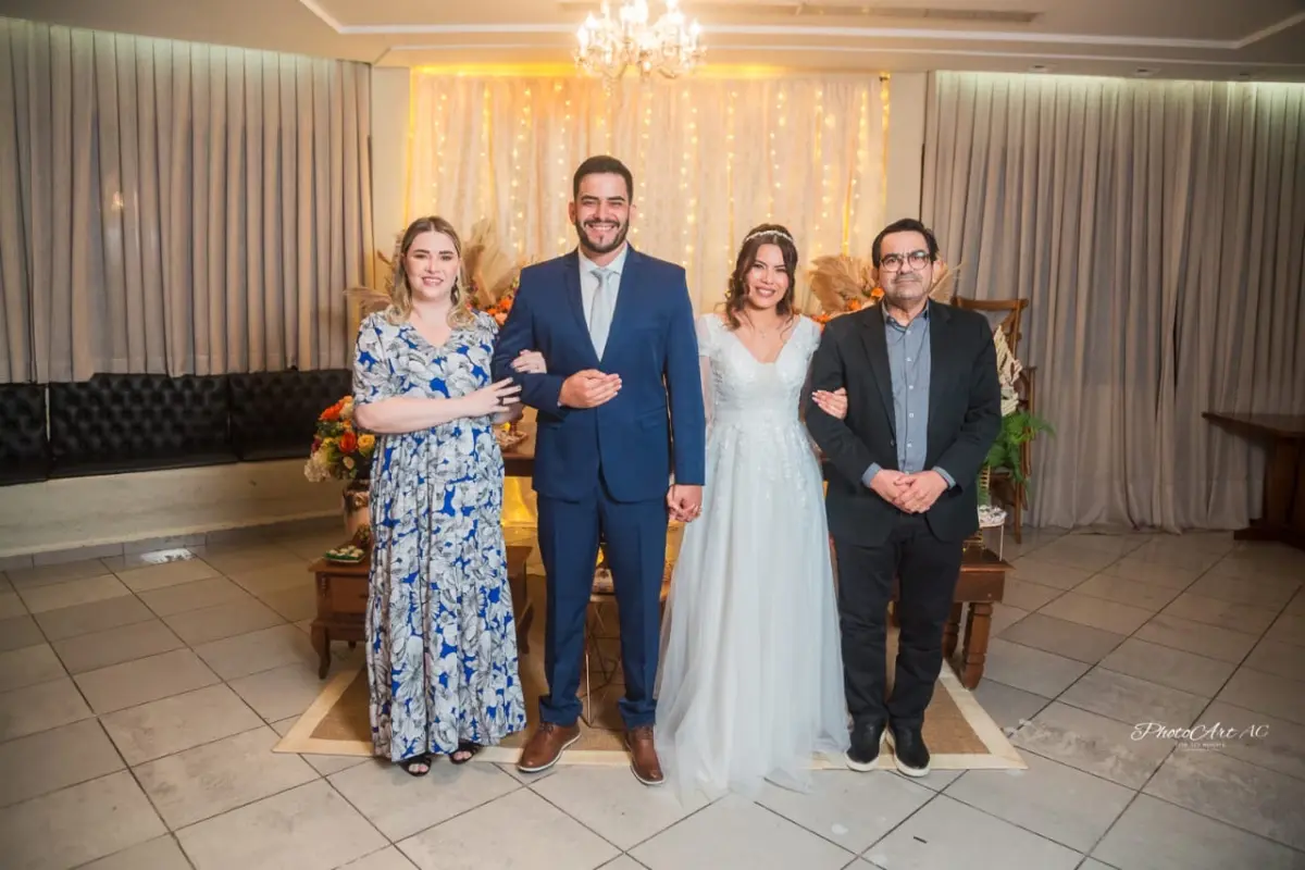 O casal Alcilene Levi e Sávio Barbosa trocou alianças no último sábado (6) no Pão de Queijo Buffet, em Rio Branco. A festa reuniu amigos e familiares em um momento inesquecível. Entre os convidados, a presença da secretária de Estado da Mulher, Márdhia El-Shawwa Pereira e o senador acreano Alan Rick.