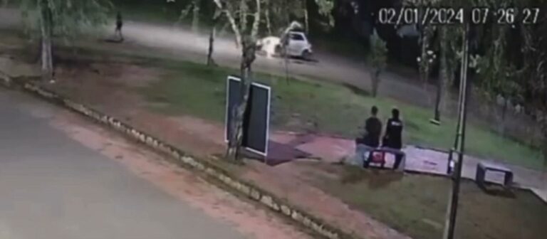 Um circuito de cĂąmeras flagrou o momento do impacto entre uma motocicleta e um carro, durante um acidente em Rio Branco, na Ășltima terça-feira (2).