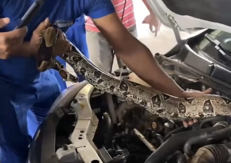 Uma cobra gigante foi retirada do motor de um carro na oficina Mega Centro Automotivo, em Rio Branco, nesta quarta-feira (10). O veículo foi levado em um guincho por uma cliente. Segundo o site Notícias da Hora, trata-se de uma cobra da espécie jibóia.