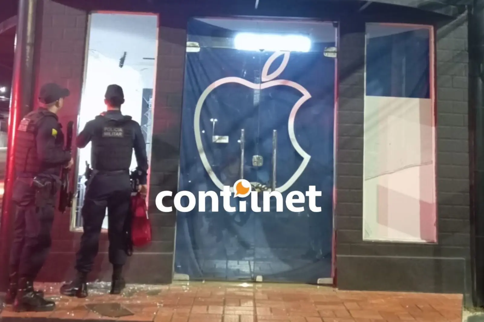 O video (disponível no fim da reportagem) mostra quatro indivíduos arrombando um estabelecimento comercial de vendas e consertos de aparelhos celulares da marca Apple.